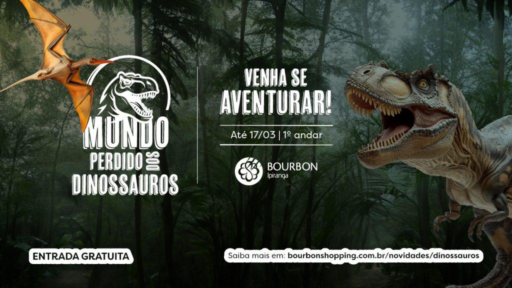 17 de março de 2025, uma atração gratuita para crianças de 3 a 12 anos. O evento traz uma arena temática de dinossauros para o 1º andar do shopping, incluindo um dinossauro animatrônico que se movimenta e emite rugidos na entrada.