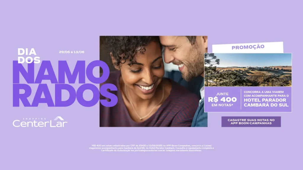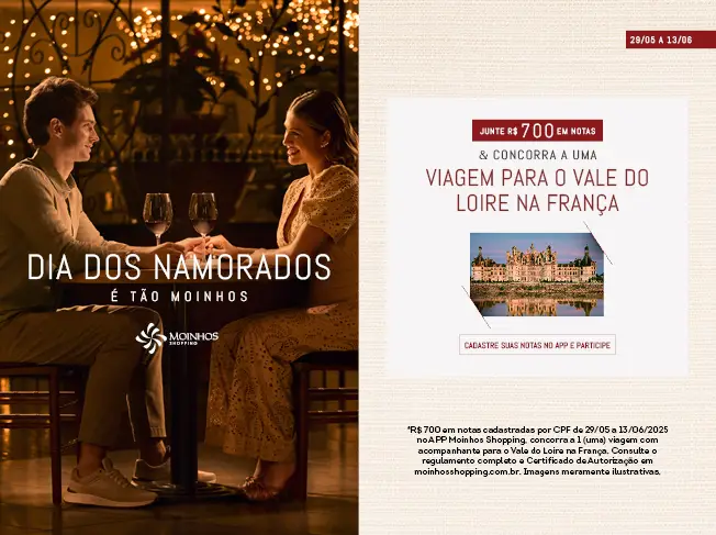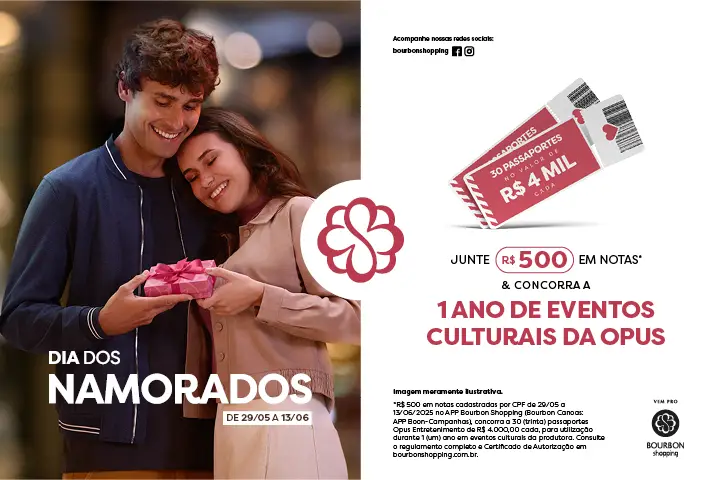 De 29/05 a 13/06/2025, os Shoppings da AIRAZ promovem suas campanhas de Dia dos Namorados. Confira, a seguir, os detalhes promocionais de cada um.
