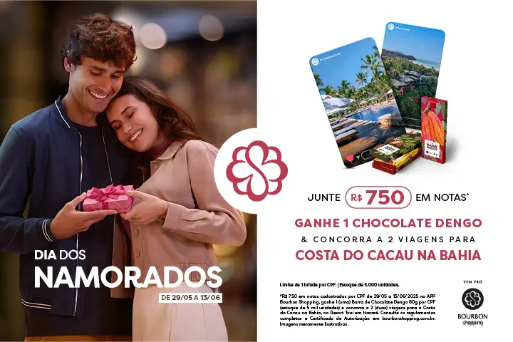 Os clientes podem participar da promoção cadastrando notas fiscais de compras feitas no shopping no aplicativo Bourbon Shopping. A cada R$ 750 em notas cadastradas no app, eles ganham QR Code para troca por uma barra de chocolate Dengo personalizada do Bourbon Shopping São Paulo de 80 gramas (limitadas ao estoque de 5.000 unidades e ao máximo de 1 por CPF) e 1 número da sorte para concorrer a 2 Pacotes turísticos com direito a 1 acompanhante para Itacaré/BA.