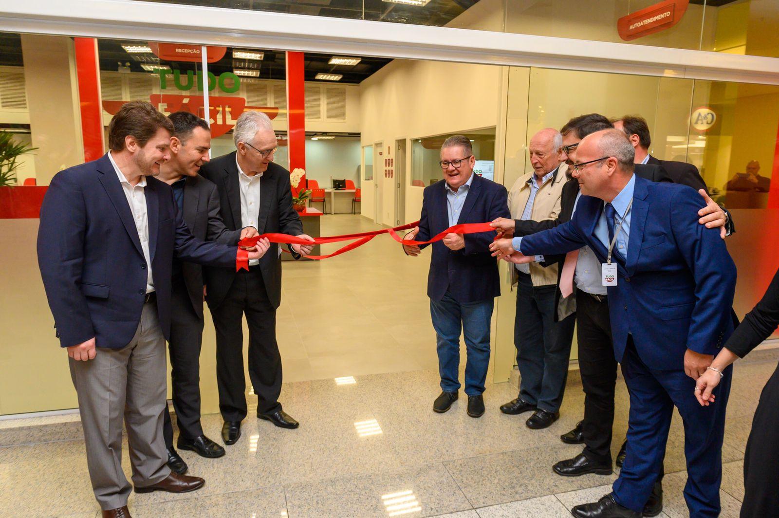 Da esquerda à direita: Roberto Manuel Zaffari (Diretor da AIRAZ Administradora), Vicente Perrone (Secretário Municipal de Desenvolvimento Econômico), Claudio Luiz Zaffari (Diretor do Grupo Zaffari), Ranolfo Vieira Júnior (Governador do Estado do Rio Grande do Sul), Jorge Gerdau Johannpeter (Presidente do Conselho de Administração da Gerdau), Claudio Gastal (Secretário de Estado de Planejamento, Governança e Gestão) e Günther Stenzel (Gerente da Unidade Local do Tudo Fácil) em cerimônia de inauguração. Foto: Zé Carlos de Andrade